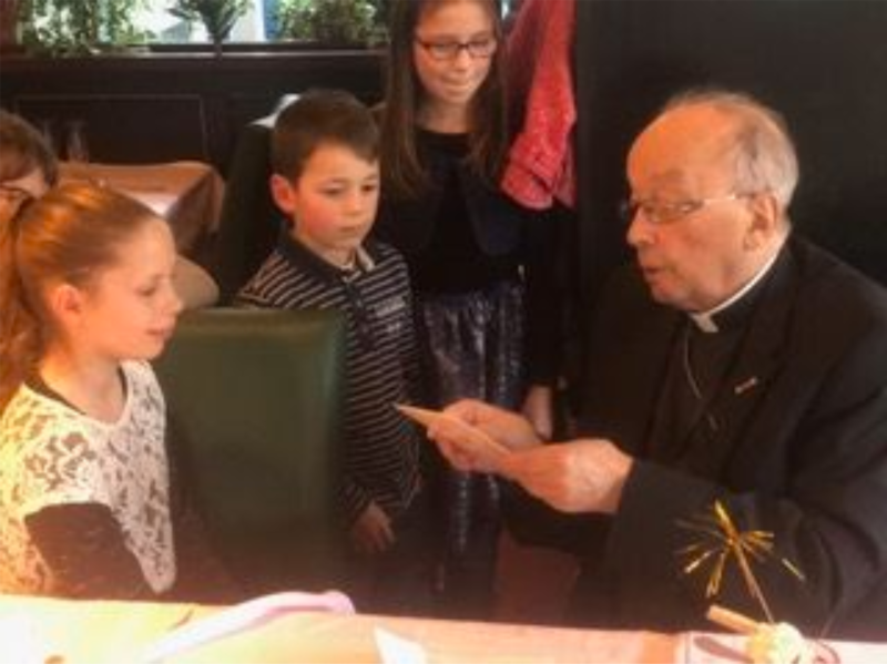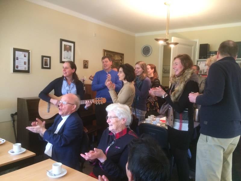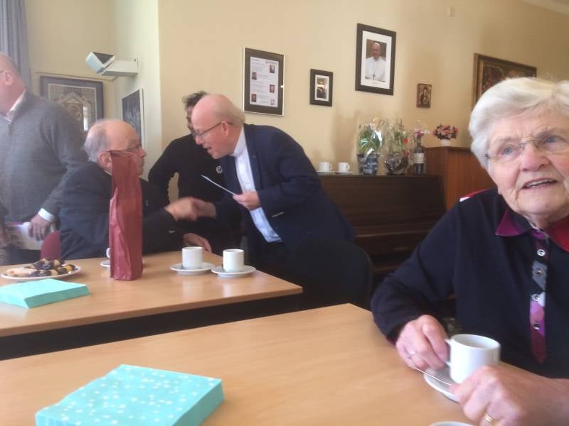 Wat een feest!….. Ik heb in geen enkele parochie zo een verjaardag mee mogen maken. Hartelijk dank voor allen die organiseerden en ons samen bracht, en de gastvrouw met haar team…..Dank, dank, en ik moet wat beschaamd zeggen: ik zag geen rekening, maar goed: ik zal de Parochie wat van dat vakantiegeld 2017 over maken.