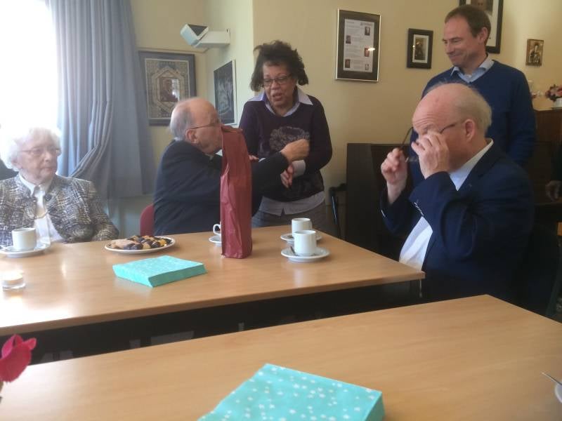 Maar ik ben er dagelijks nog mee bezig: WAT is er toch gebeurd. die dag? Ik heb, denk ik nog nooit van die 91 jaren zulk een verjaardag gehad. Lieve zussen en broers vanuit familie, vriendenkring, Gemeenschap Emmanuel. Huiskringen, parochianen, ik hoop niemand over te slaan……hebben zoals voorgaande jaren gevraagd: wat wil je met je verjaardag doen? Wat wil je voor een cadeau ? Gezien de leeftijd en energievoorraad word je, als je het nog niet was, bescheiden…