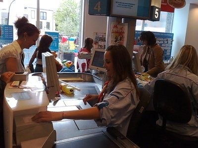 In de lange rij van 'wachtenden - voor - u' bij de kassa had ik alle tijd om dat tot me te laten doordringen. De meeste mensen zeiden niets tegen het meisje achter de kassa, dat bijna machinaal de verschillende boodschappen over het "alziende" oog van de kassa beweegt. Het moet allemaal zenuwachtig vlug. Ik zie dat zij ook een ring draagt, die er op duidt dat ze ook al iemand "heeft". Ze reageert verbaasd als ik haar vraag, zo maar tussendoor, of ze na zo'n dag aan de kassa niet erg moe is. "0, nee, meneer, dat valt best mee. Wilt u zegels? " Toch blijkt het ook haar iets te doen, dat iemand wat tegen haar zegt. Ze wenst me sterkte bij het sjouwen van de boodschappen, die ik in de haast onhandig van het kassablad in de plastic zak probeer te krijgen.