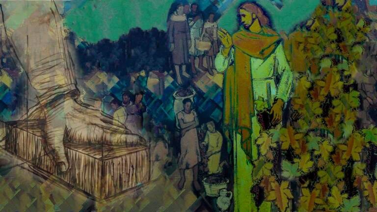 Ik zag en hoorde bij de aanhef van Jesaja’s gedicht over een wijngaard , maar het wordt een drama,…en het lied van Jesaja sterft al gauw uit, en in het verhaal van Jezus in hetzelfde Jeruzalem zoveel later, wordt het een drama, een fiasco.