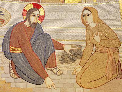 Weer boog Hij zich voorover, en schreef op de grond……Heeft niemand u veroordeeld? Zij antwoordde: Niemand Heer.